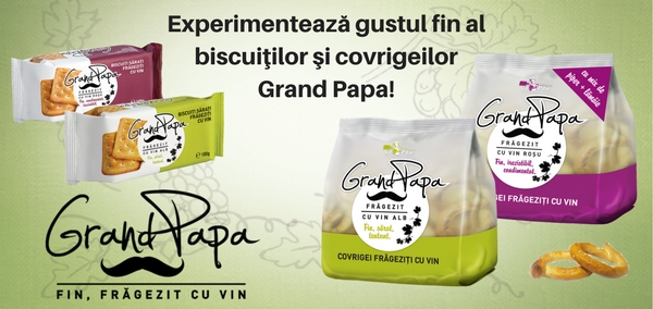 Consumatorii iubesc covrigeii si biscuitii Grand Papa pentru ca sunt fini, sofisticati, revigoranti, cu condimente inedite care le ofera un gust deosebit, unic pe piata. Atat covrigeii, cat si biscuitii Grand Papa merg bine cu iaurtul la micul-dejun si sunt excelenti ca rontaiala intre mese!